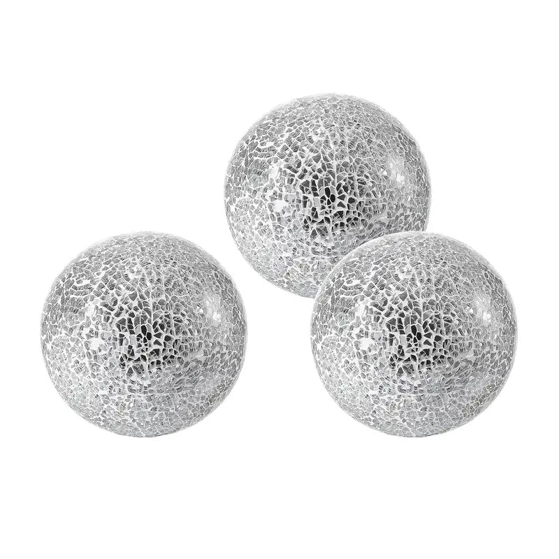 3Pcs glass mosaic balls in silver. Use as ornaments in a centrepiece. Size: about 10cm in diameter.