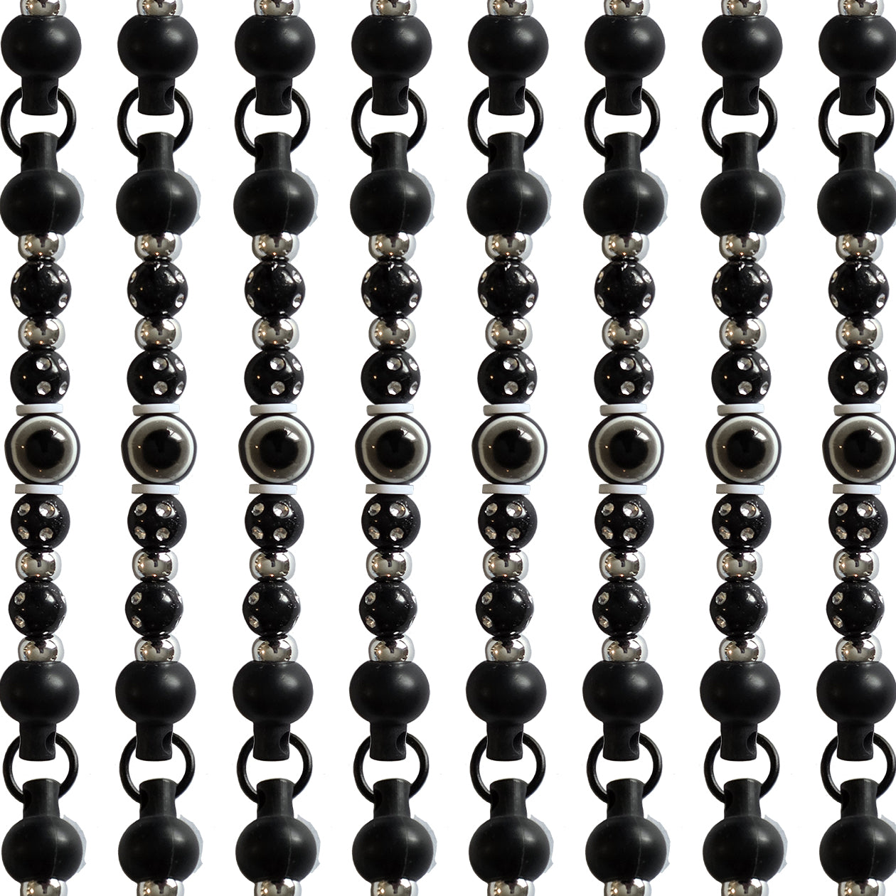 The gorgeous bead design includes glass balls decorated with diamantes with a combination of white heishi beads and silver steel...