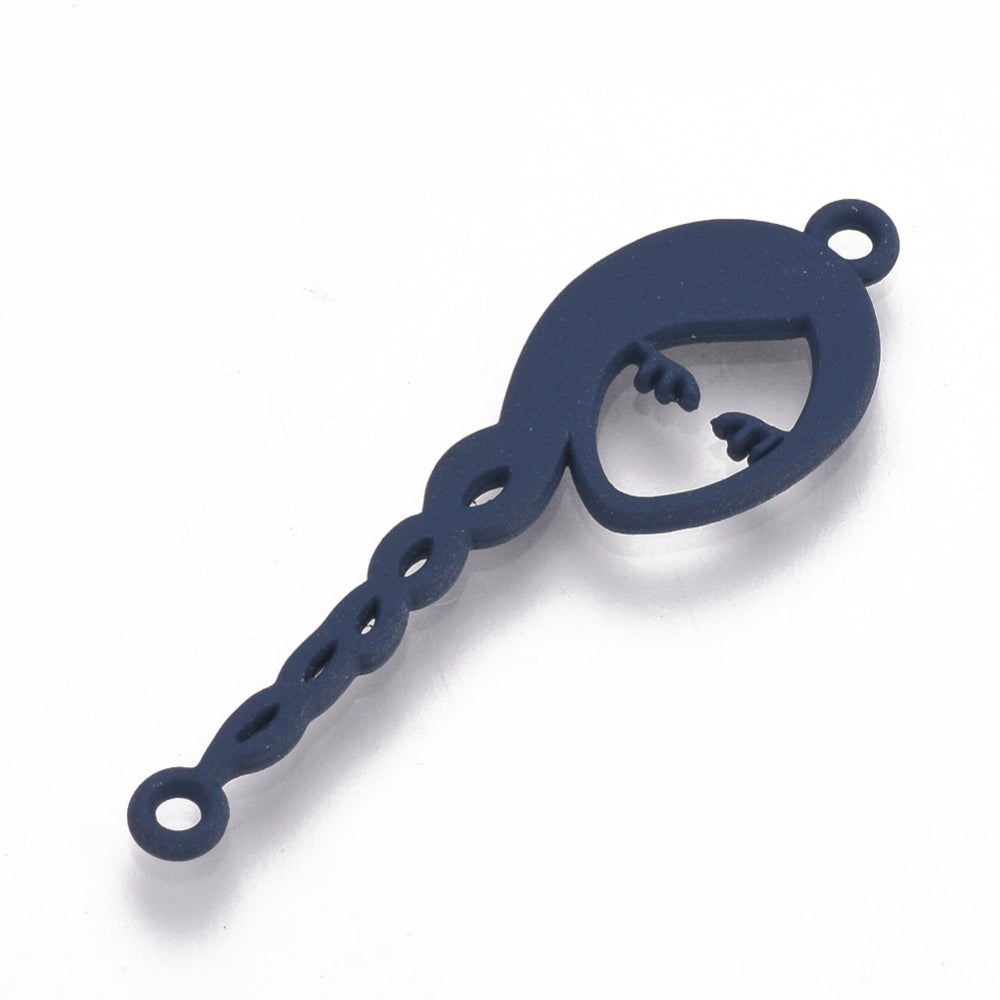 Link connector made from blue spray painted ally in the shape of a lady's face. Size: about 40mm long, 12mm...