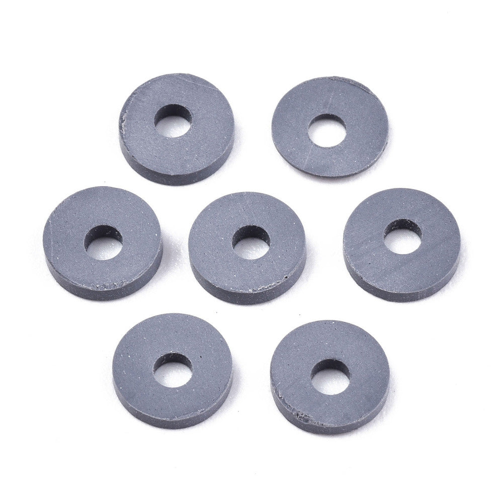 Dar grey handmade Heishi polymer clay beads. Size: about 6mm in diameter, 1mm thick Hole: 2mm Sold individually. Learn about...