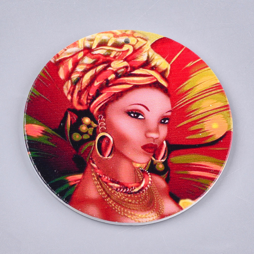 Flat round wooden printed pendants. Size: about 60mm in diameter, 2.5mm thick Hole: 1.5mm Sold individually. Learn about our Mix...