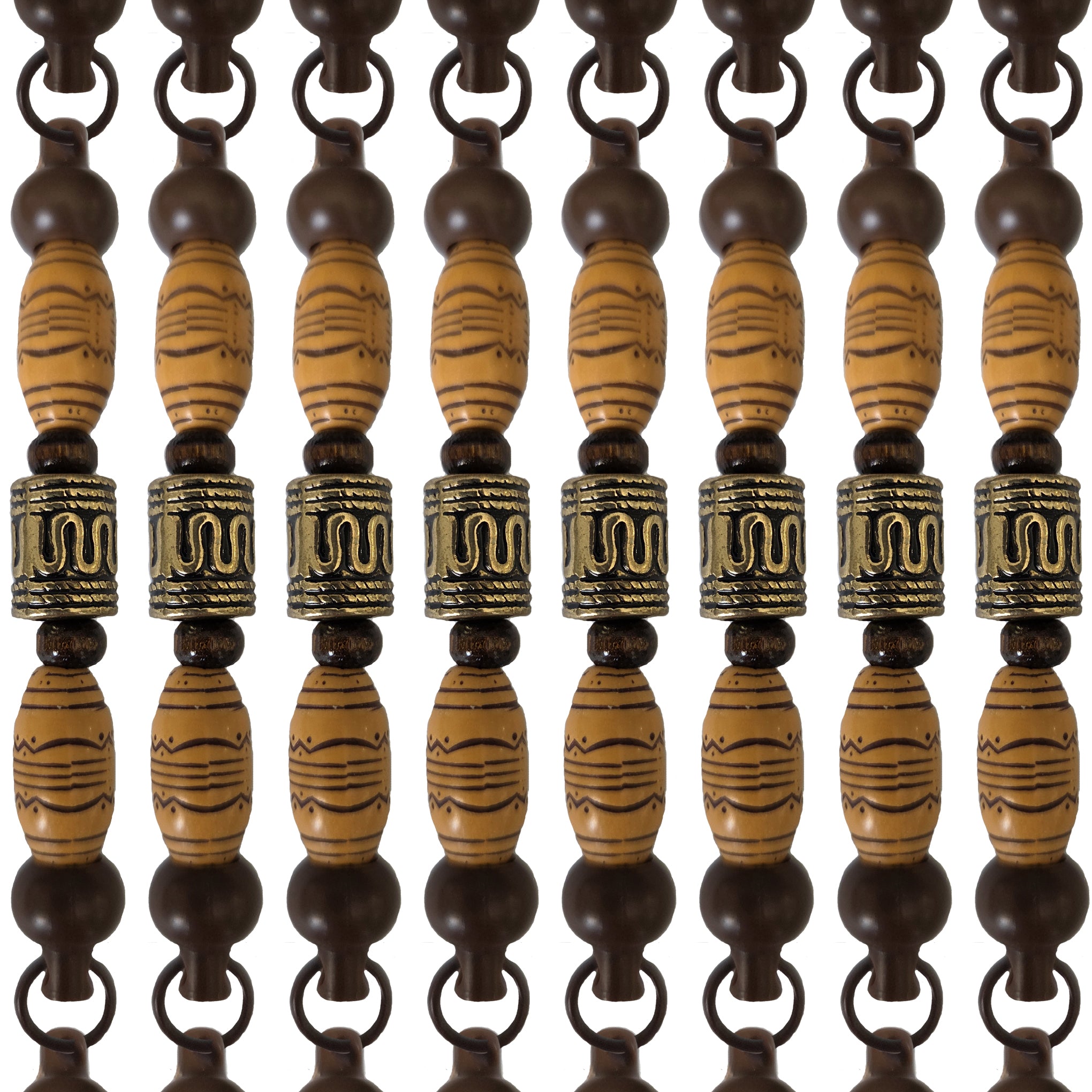 Stylish beaded design with gold columns and shades of brown wooden beads. Beautiful as a handcrafted piece against a wall...