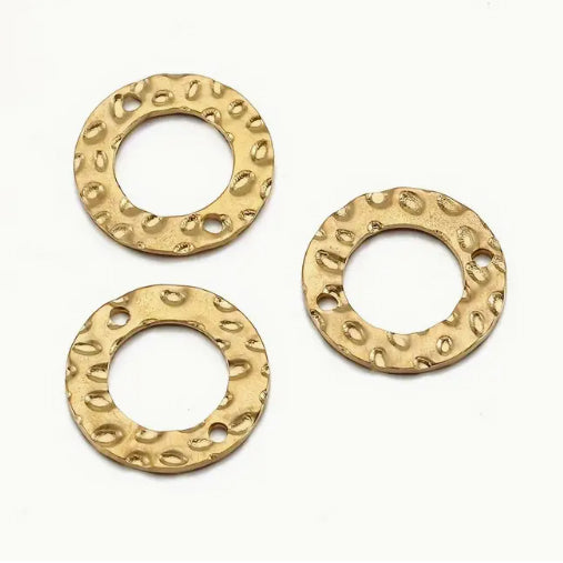 Round shape stainless steel connectors in gold colours. Size: about 15mm in diameter Hole: 1.5mm Sold individually. Learn about our...
