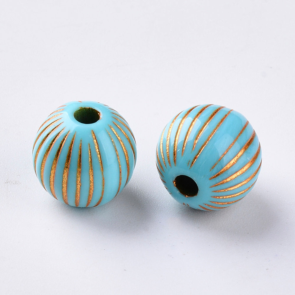 Golden metal enlaced turquoise acrylic beads. Size: about 11.5mm in diameter Hole: 2.5mm Sold individually. Learn about our Mix and...