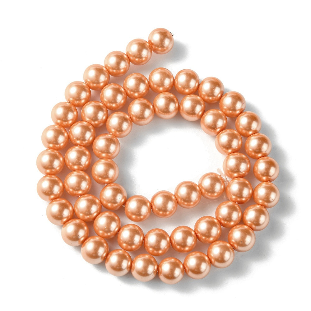 Glass pearl bead, round in shape and orange in colour. Size: about 8mm in diameter Hole: 0.7~1.1mm Sold individually. Learn...