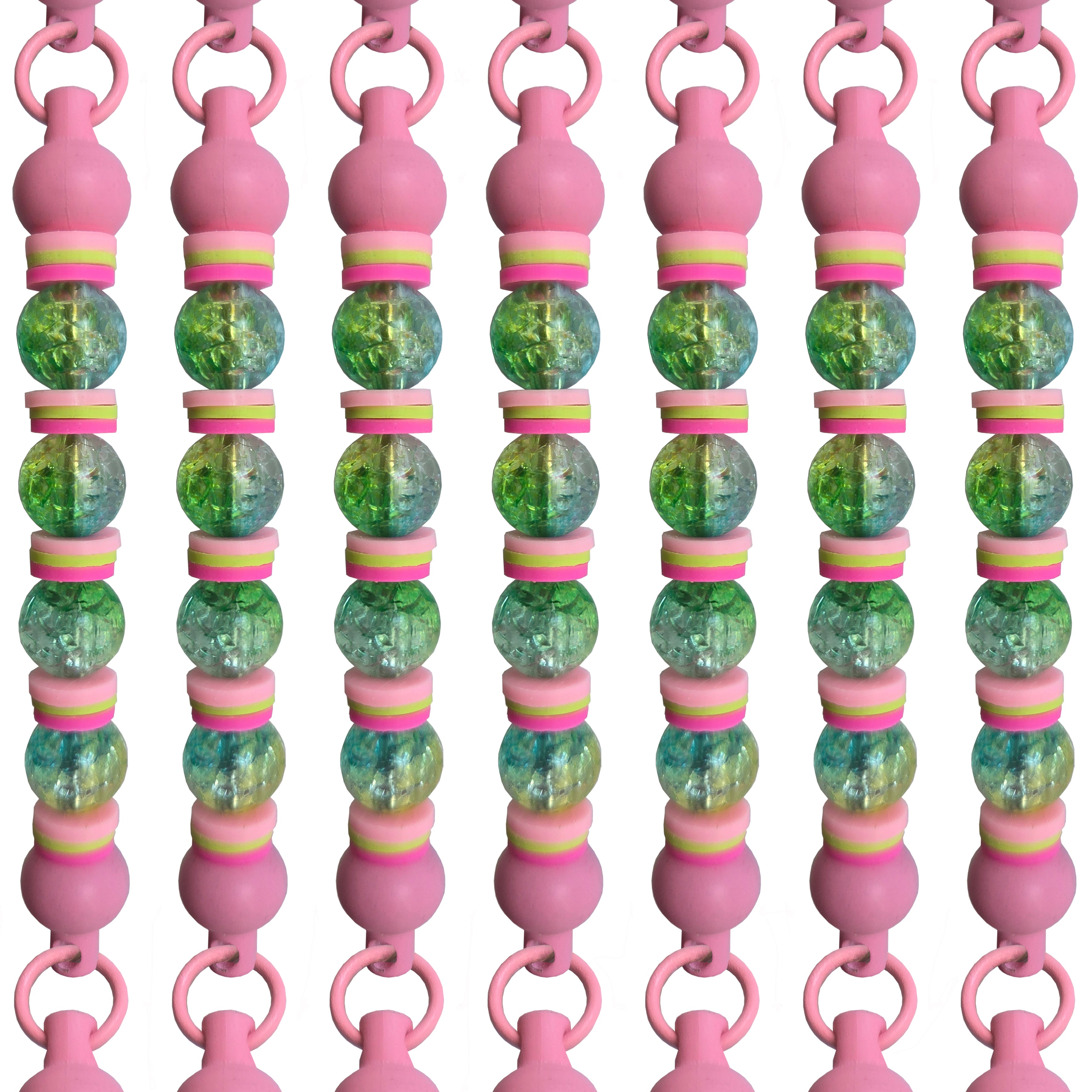 Pastel combination of pinks and lime greens make thus bead curtain a perfect decorative piece as a window curtain, screen...
