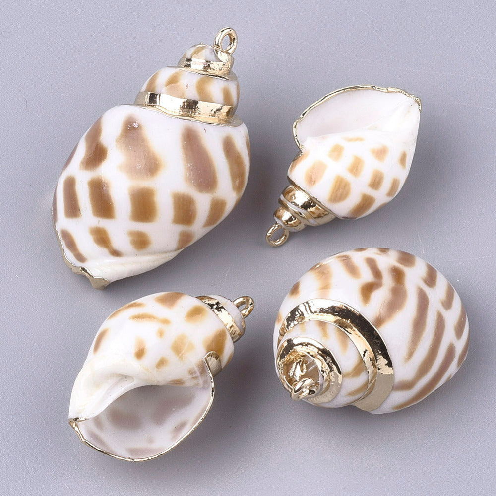 Spiral shell pendants with gold plated findings. Size: about 25~40mm long, 15~25mm wide, 14~18mm thick Hole: 1.8mm Sold individually. Learn...