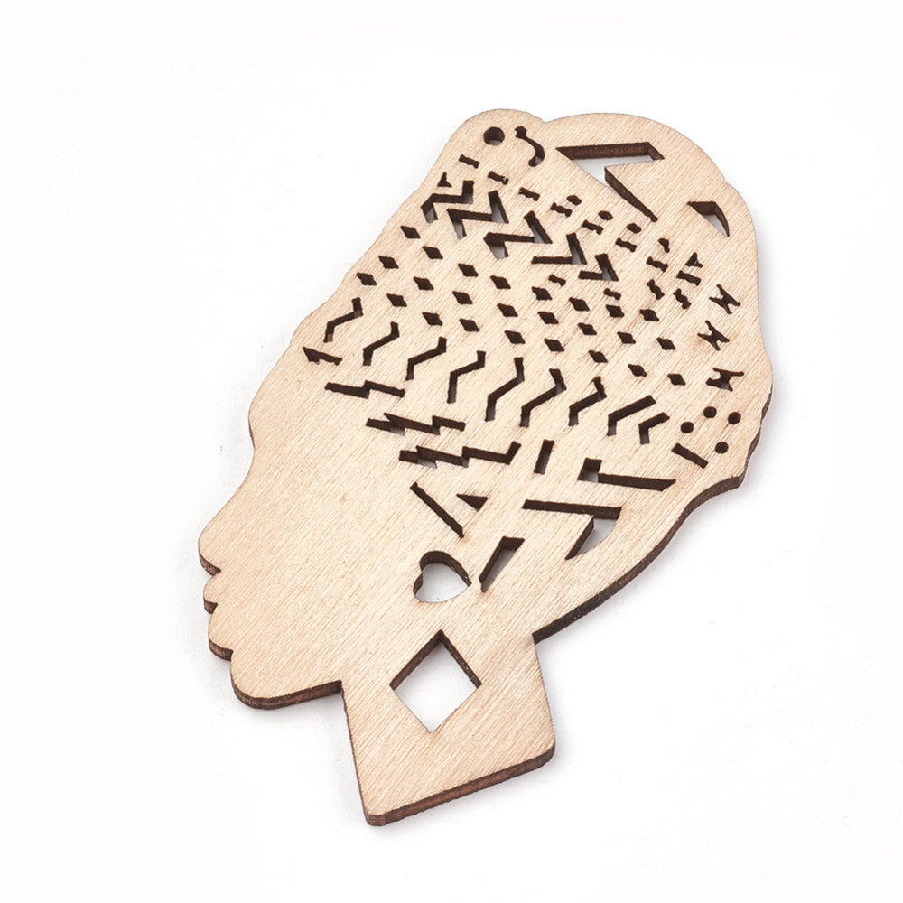 Undyed wooden pendant in the shape of a female head. Size: about 65mm long, 61mm wide, 3mm thick Hole: 1.8mm...