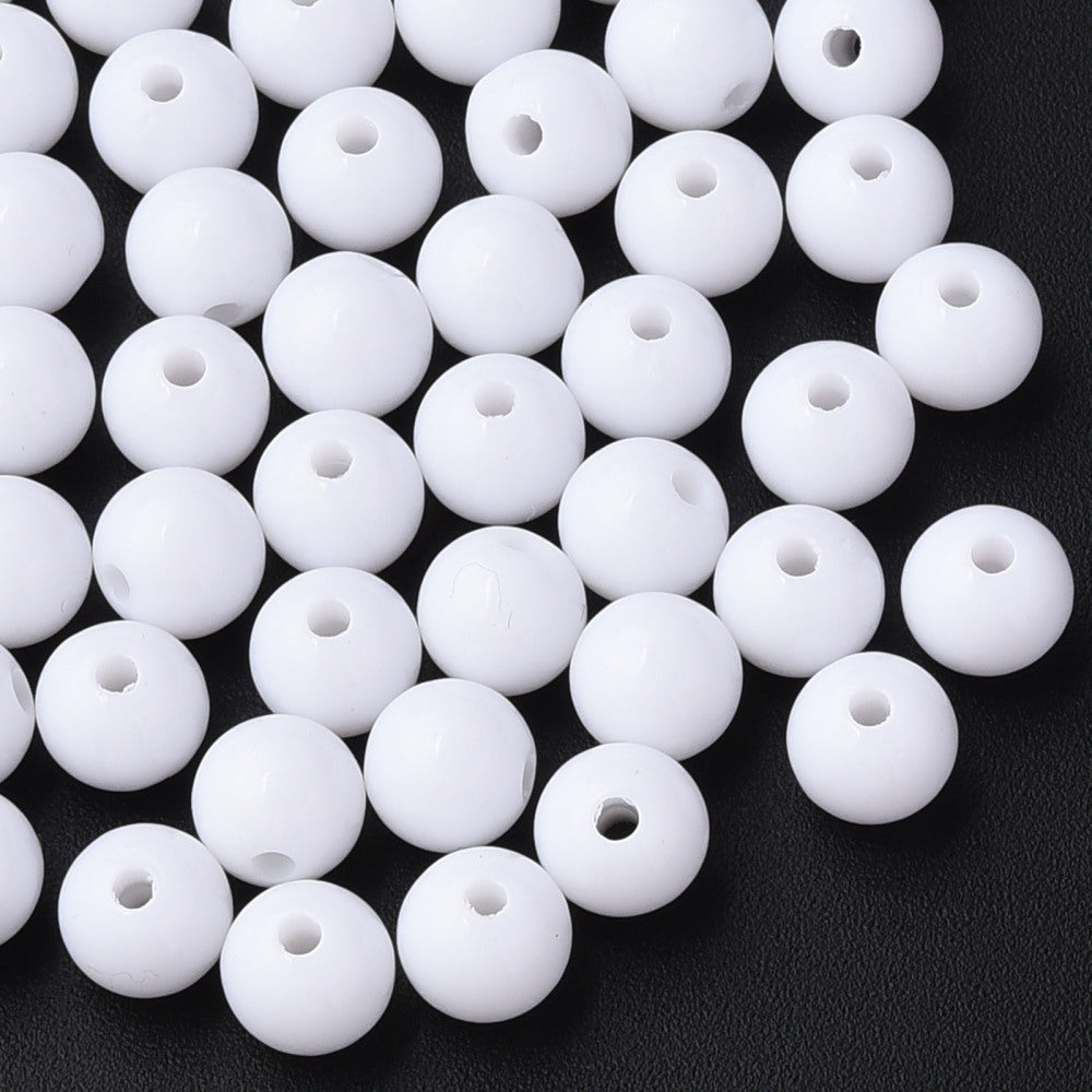 White round opaque acrylic beads. Size: about 8mm in diameter, 7mm thick Hole: 2mm Sold individually. Learn about our Mix...