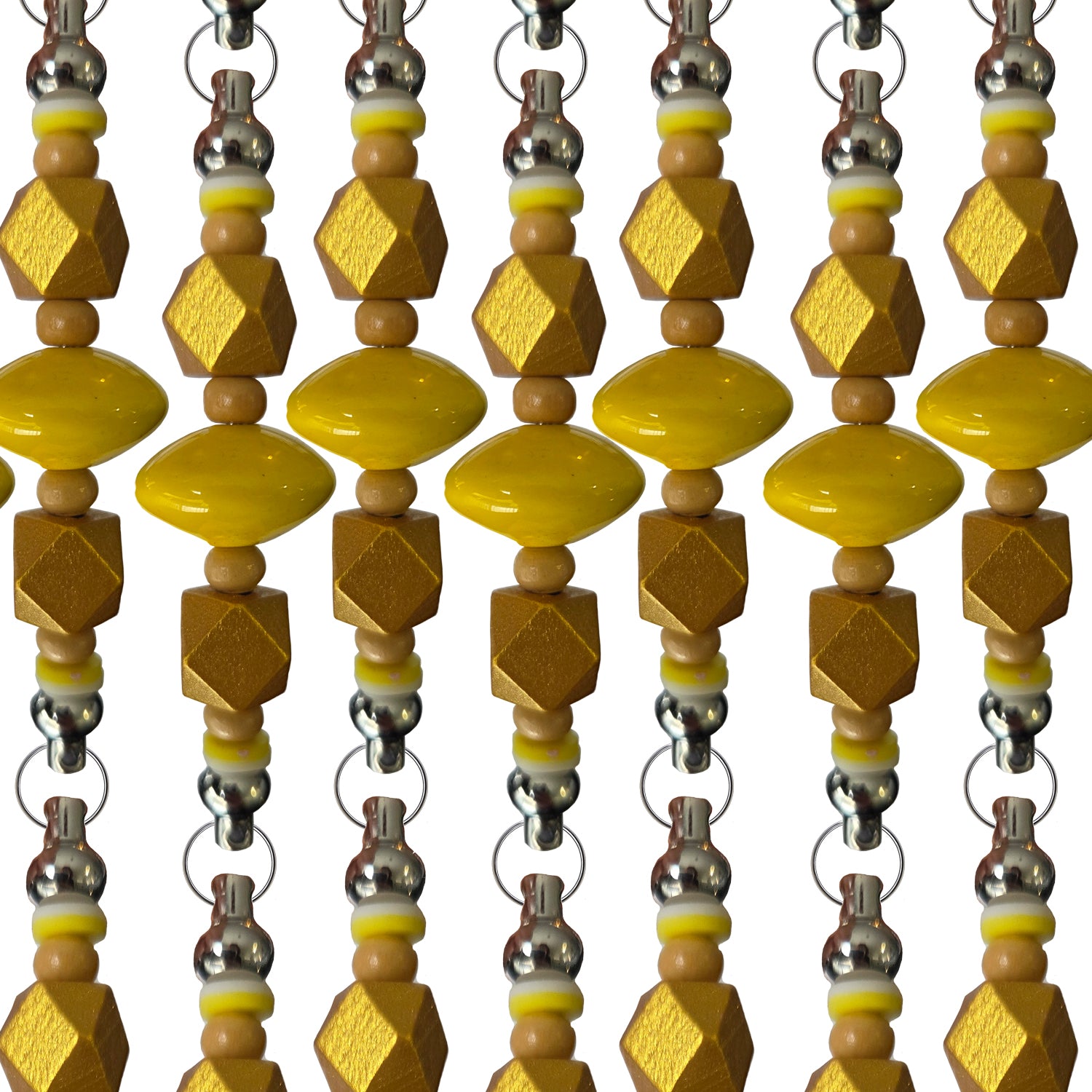 Stunning yellow glazed ceramic beads with adjacent round and geometric cream and gold wooden beads and ends finished off nicely...